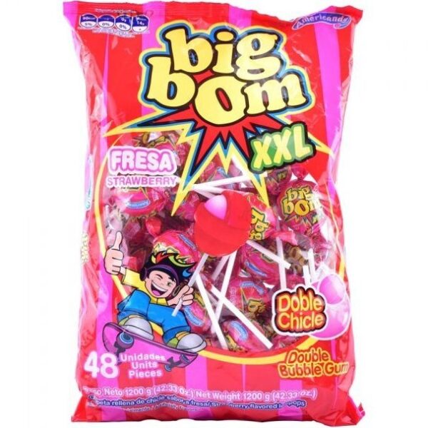 بیگ بوم (Big Bom) پادشاه آبنباتهای چوبی مغزدار است. این محصول با یک لایه ضخیم و خوشمزه آبنبات شروع میشود و وقتی آن را تمام کردید، با یک آدامس بادکنکی بزرگ و نرم در مرکز آن سورپرایز میشوید. این ویژگی باعث میشود لذت خوردن آن دو برابر شود. طعمهای قوی و غلیظ مثل نوشابه کولا یا آلبالو ترش در بیگ بوم بسیار پرطرفدار هستند. این محصول برای کودکانی که هم عاشق آبنبات هستند و هم آدامس، بهترین انتخاب ممکن است.